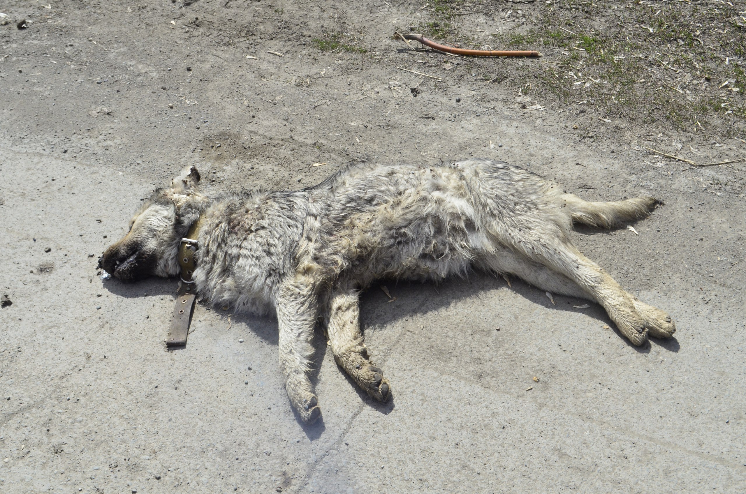 В Гае на дороге лежит гниющий труп собаки