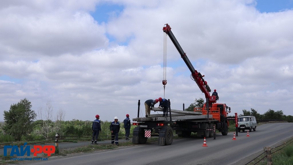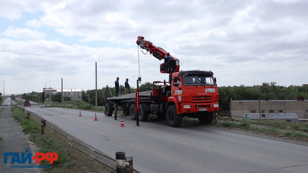 На путепроводе в Гае устанавливают новые опоры освещения