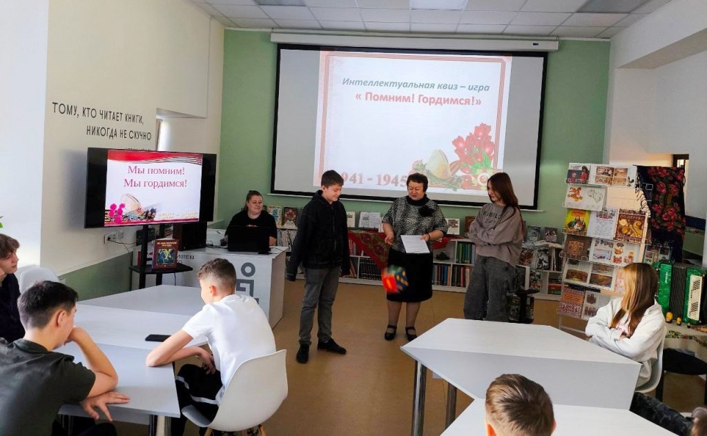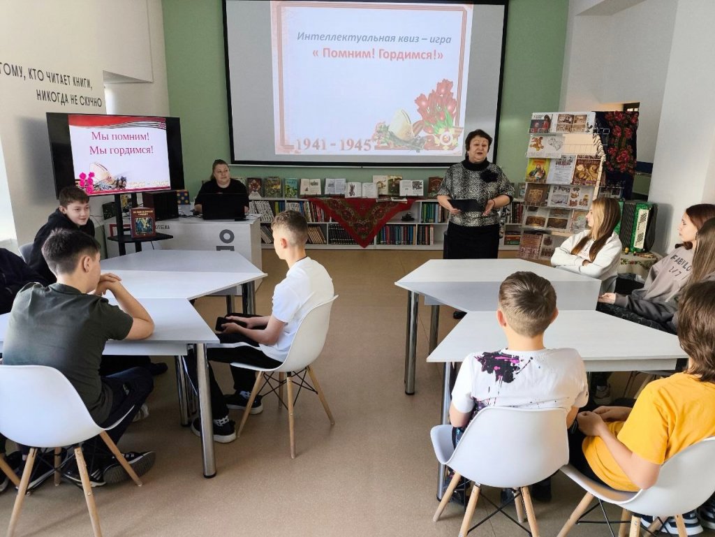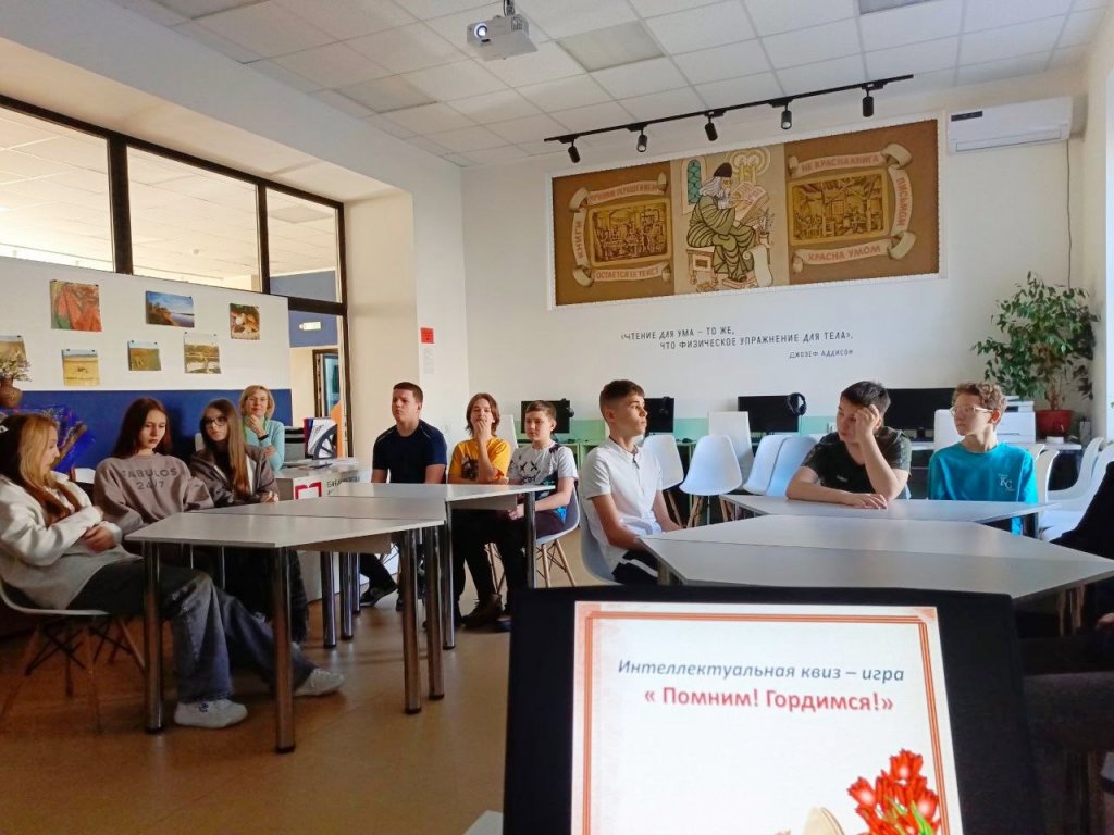 В Центральной детской библиотеке школы № 8 прошла интеллектуальная игра «Помним! Гордимся!» для учащихся восьмых классов, приуроченная к 80-летию Победы в Великой Отечественной войне. Мероприятие в формате квиза оказалось захватывающим и познавательным. Ребята разделились на команды и отправились в увлекательное путешествие по пяти станциям. На каждой станции им предстояло вспомнить ключевые события и даты войны, научиться расшифровывать закодированные послания, а также познакомиться с произведениями литературы, искусства и музыки того времени.