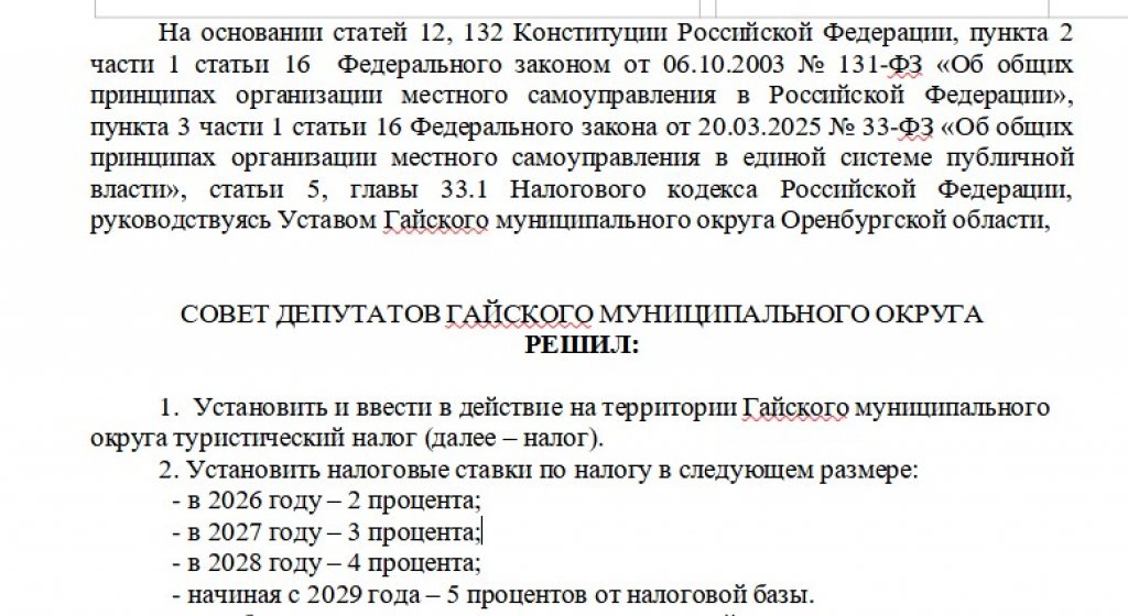 Депутаты установили такие же налоговые ставки, что и в других курортных центрах региона — Орске, Новотроицке и Оренбурге.