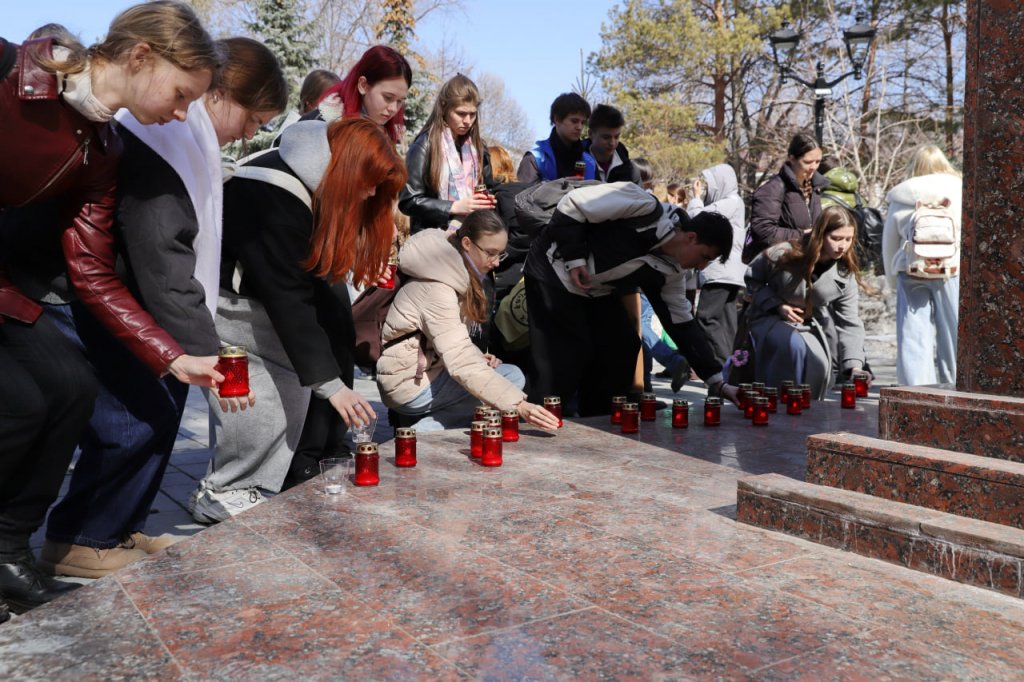 В этот же день у монумента «Добрый ангел мира» прошла акция в память о жертвах теракта в «Крокус Сити Холле». Волонтёры культуры, студенты и члены Молодёжного совета министерства культуры Оренбургской области принесли бумажных журавликов и зажгли свечи в память о погибших.